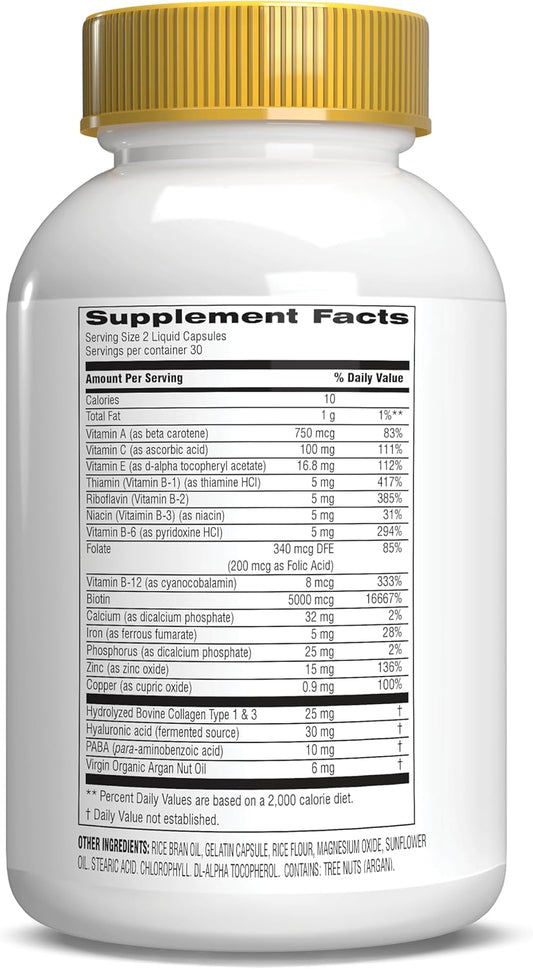 Biotin Supplement for Hair, Skin, and Nails with Collagen, Vitamin C, Iron, Argan Oil, and Hyaluronic Acid - 60 Liquid Capsules