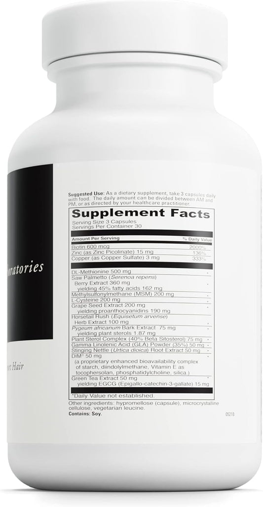 Hair Effects Dietary Supplement with Biotin, Zinc, Copper, Saw Palmetto, and Grape Seed Extract - Supports Healthy Hair Growth and Skin - Gluten-Free - 90 Capsules