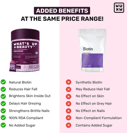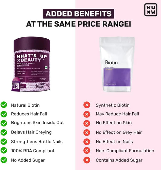Natural Biotin Gummies for Hair Growth, Skin, and Nails - Vitamins A, E, Folic Acid, Zinc, Aloe Vera - Men and Women - Sugar-Free - 30 Days Pack