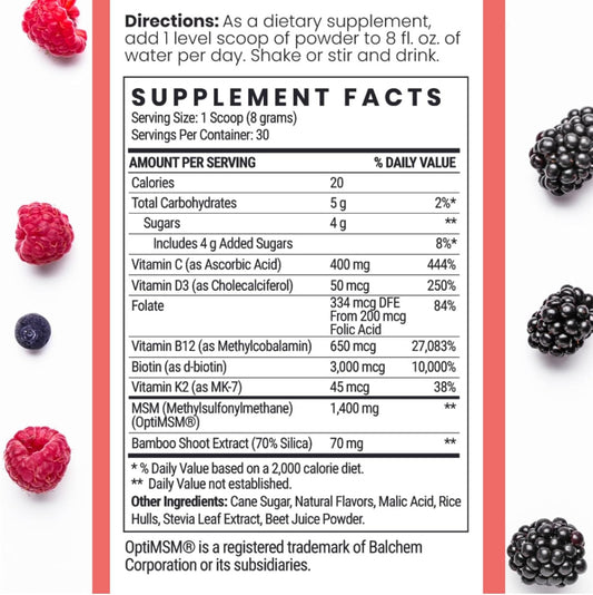 Qhemet Biologics Hair Nutrient Blend with MSM, Biotin, Bamboo Silica, and Vitamins D3 + B12 for Rapid Hair Growth - 8.5 oz Powder Blend for Lush Volume and Hair Health