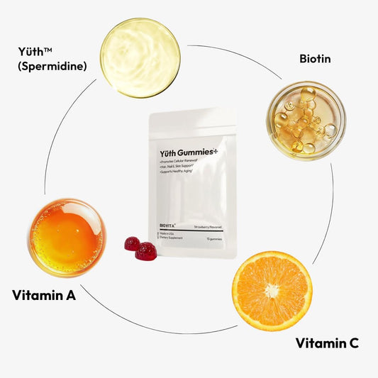Spermidine-Infused BigVita Yuth Gummy+ for Skin, Hair, Nails | Collagen & Cellular Renewal Support with Biotin, Vitamin C & A | Anti-Aging Wellness Gummies