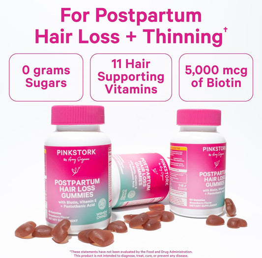 Postpartum Hair Loss Gummies with Biotin, Vitamin E, Pantothenic Acid, B6 & B12 - Strong Hair, Skin, Nails - New Mom Essentials - 60 Gummies