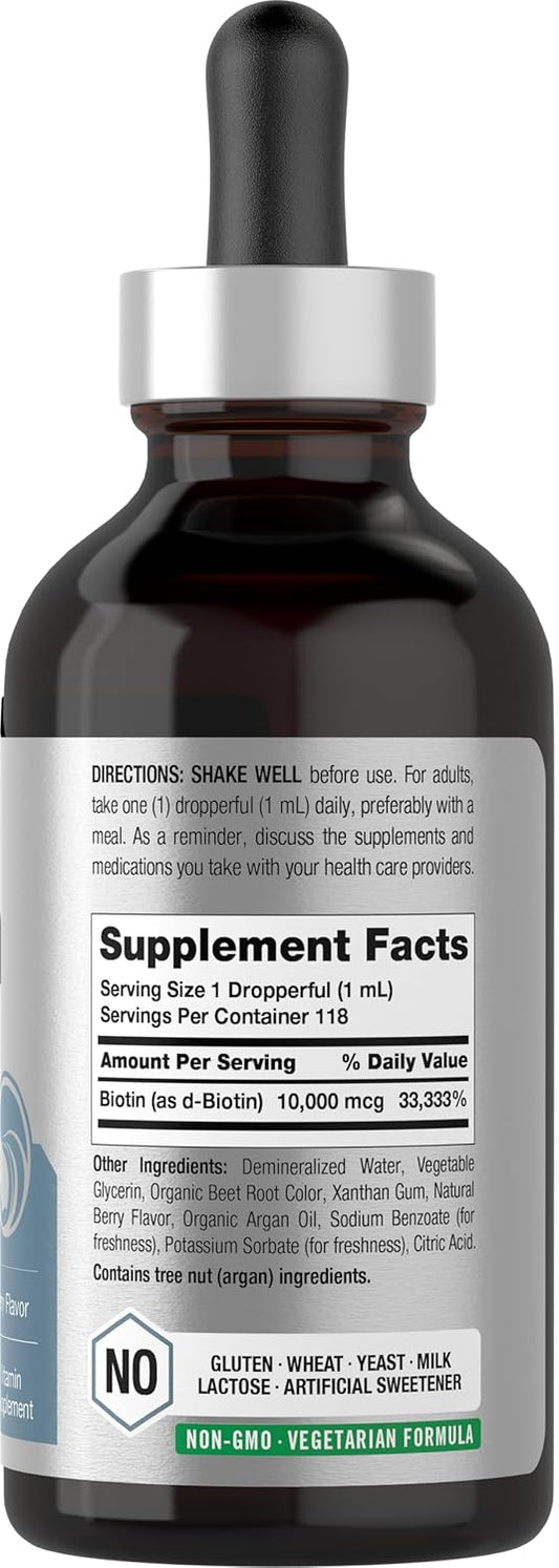 Berry Flavored Biotin Liquid Drops | 10000mcg | 4 fl oz | Vegetarian, Non-GMO & Gluten-Free