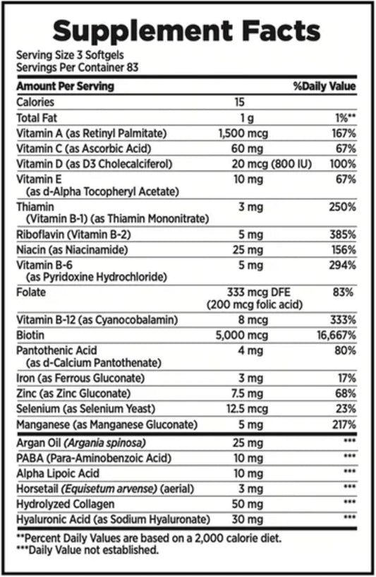 Hair, Skin, and Nails Supplement with Biotin, Collagen, and Vitamin E - Promotes Healthy Hair Growth and Skin - 60 Capsules