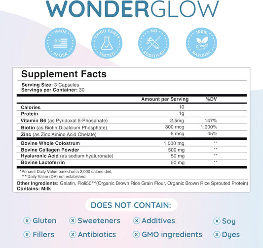 Hair Skin and Nails Vitamins with Bovine Colostrum, Collagen, Hyaluronic Acid, Biotin, Zinc, & Lactoferrin for Faster Growth and Stronger Nails - 30 Servings