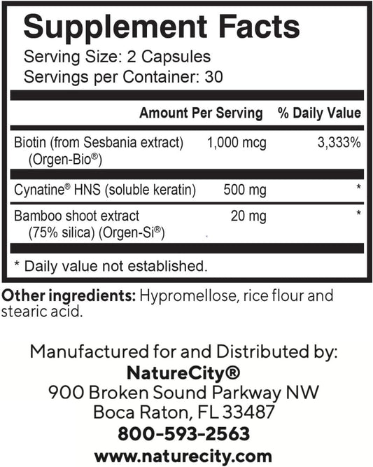 Plant Based Biotin and Cynatine Keratin Supplement for Hair, Nails, and Skin | Fuller, Stronger Hair and Nails | Non-GMO | 120 Capsules