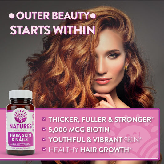 All-Natural Hair, Skin & Nails Nourishing Supplement with 4000mcg Biotin - 60 Count