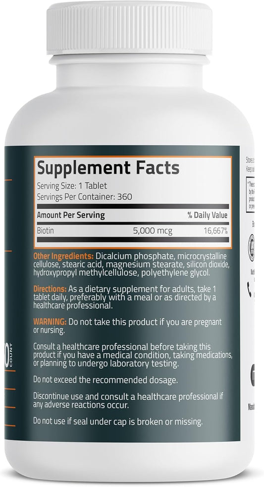 High Potency Bronson Biotin 5,000 MCG for Healthy Hair, Skin, Nails & Energy - Non-GMO, 360 Vegetarian Tablets