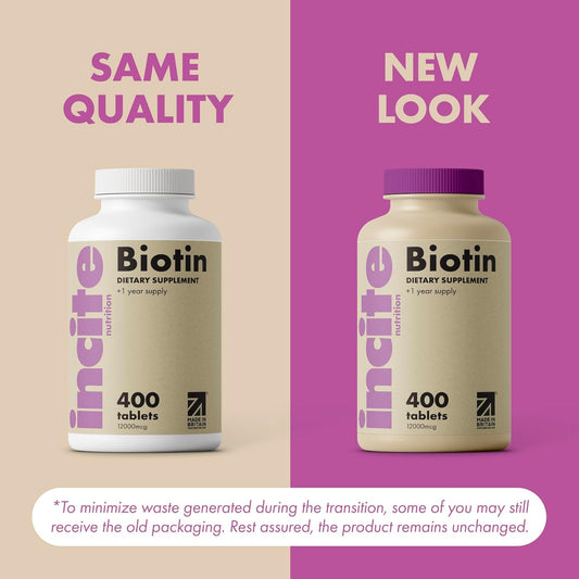 High Strength Biotin Supplement 12000mcg - 1 Year Supply - Hair Growth Vitamins for Hair, Skin & Nails - Vegan & GMO-Free - UK Made