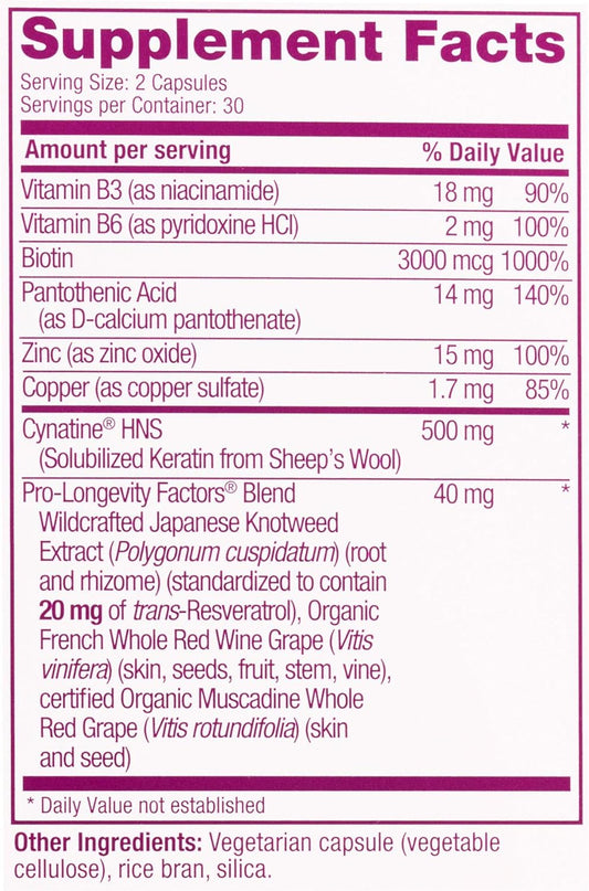 Reserveage Beauty Keratin Hair Booster with Biotin & Resveratrol - Hair Growth Supplement for Men and Women - Supports Healthy Thickness and Shine - 60 Capsules