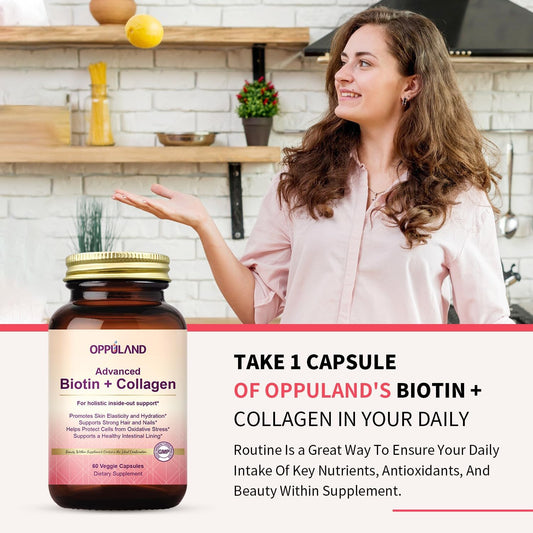 Biotin & Collagen Capsules - 5000 mcg Biotin + Collagen for Women - Strong Hair, Nails & Skin Support - 60 Veg Caps