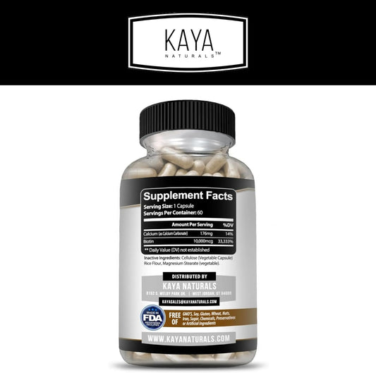 Men's Biotin Supplement for Beard & Hair Growth, Healthy Skin, Metabolism - 60ct by Kaya Naturals