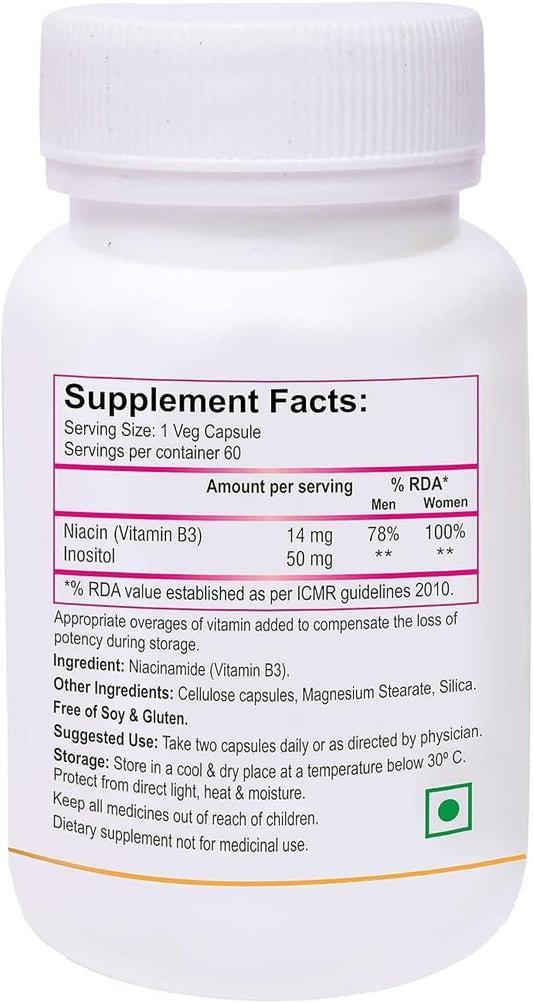 High-Potency VEDA Nutraceuticals Vitamin B3 with Inositol Supplement - 60 Veg Capsules