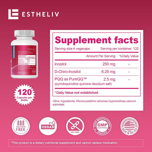 Inositol Ovarian Health Support Supplements for Women - Myo-Inositol & D-Chiro-Inositol Dietary Supplement for Female Hormone Balance - 120 VegeCaps