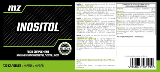 MZ Inositol 600mg Capsules - 120 Count - 4 Month Supply - Promotes Mental Health - by MZ Meet the zone