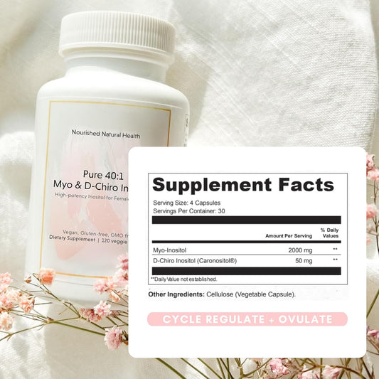 Nourished 40:1 Myo & D-Chiro Pure Inositol Supplement for Women - 360 Capsules for Fertility and Skin Health