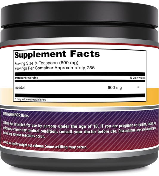 Premium 1000mg Inositol Tablets for Reproductive Health, Stress Reduction, Healthy Mood, Circulation, and Liver Function - Non-GMO and Gluten Free - 1lb Powder