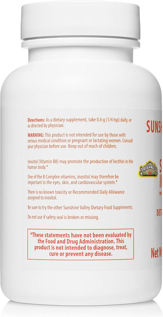 Sunshine Valley Super Inositol Powder - Vitamin B8 PCOS Fertility Supplement for Hormonal Balance & Healthy Ovarian Function - Non-GMO 0.5 oz