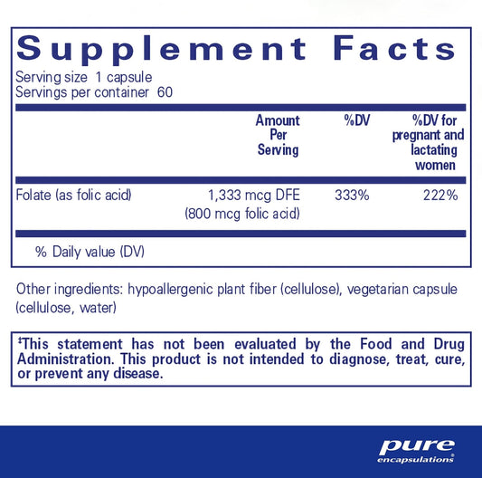 Pure Encapsulations Folic Acid Capsules - Hypoallergenic Dietary Supplement - 60 CountVendor:Pure EncapsulationsRegular price $98.67 AUDRegular priceUnit price / per-