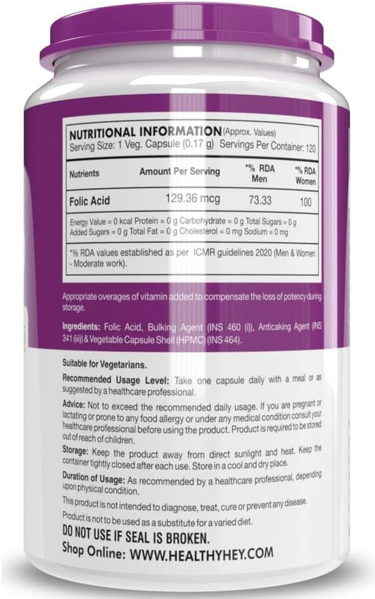 High-Quality Folic Acid Supplement - 120 Vegetarian Capsules