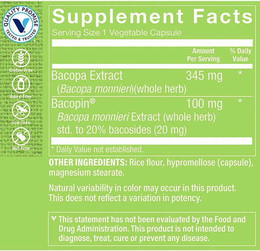 Bacopa Monnieri 500MG Brain Support Supplement (100 Capsules) - The Vitamin Shoppe