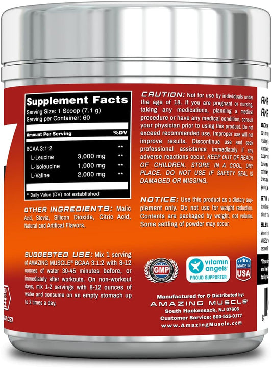 Muscle BCAA 3-1-2 Supplement - 60 Servings, Enhanced Amino Acids for Lean Muscle Mass, Improved Exercise Performance - Fruit Punch Flavor
