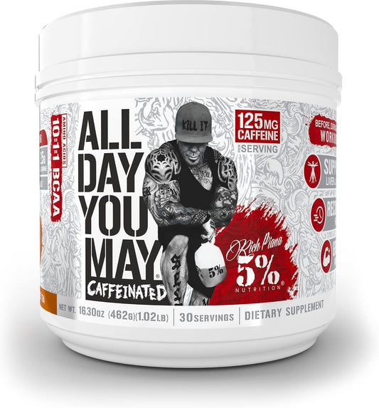 5% Nutrition Rich Piana Bundle - AllDayYouMay Caffeinated BCAA Powder & Kill It Reloaded High-Stim Pre-Workout (Fruit Punch)