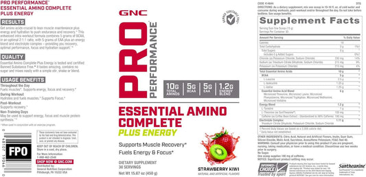 Strawberry Kiwi GNC Pro Performance Essential Amino Complete Plus Energy - 15.9 oz. for Muscle Recovery