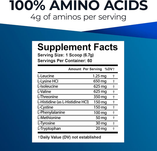 Berry Flavored Amino Complex Powder - 30 Servings, 4g Each - Essential Amino Acids Supplement - 2:1:1 BCAA Ratio - Energy, Lean Muscle, Recovery - Vegan & Non-GMO