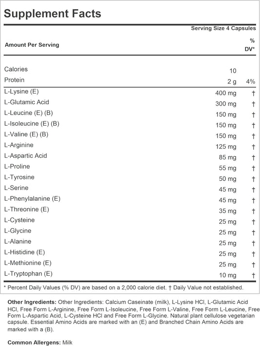 Highly Bioavailable Essential Amino Protein Capsules - Supports Organ and Tissue Function with Essential Amino Acids