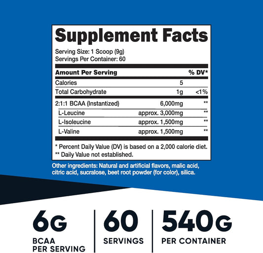 Nutricost Strawberry Kiwi BCAA Powder - 60 Servings, Optimal 2:1:1 Ratio