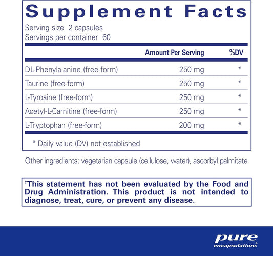 Pure Encapsulations Cognitive Aminos Capsules - Hypoallergenic Supplement for Cognitive Function Support (120 Count)