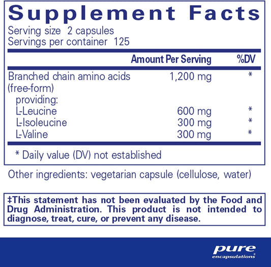 Pure Encapsulations BCAA Capsules | Hypoallergenic Muscle Function Support Supplement | 250 Capsules