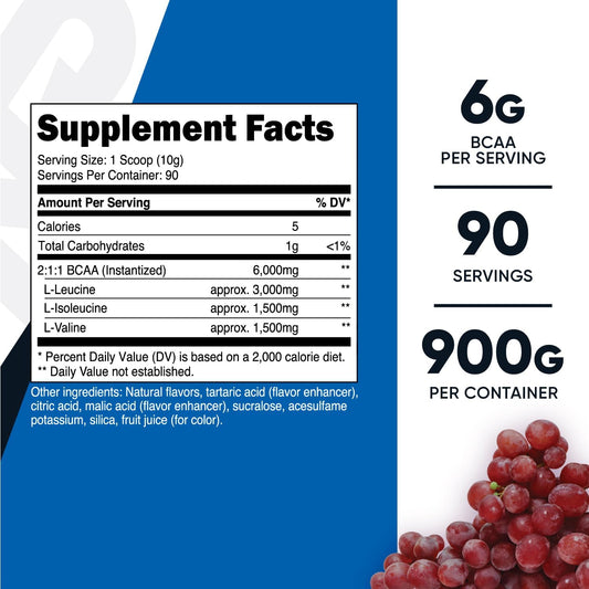 Nutricost Grape BCAA Powder - 90 Servings, Vegetarian, Non-GMO, Optimal 2:1:1 Ratio