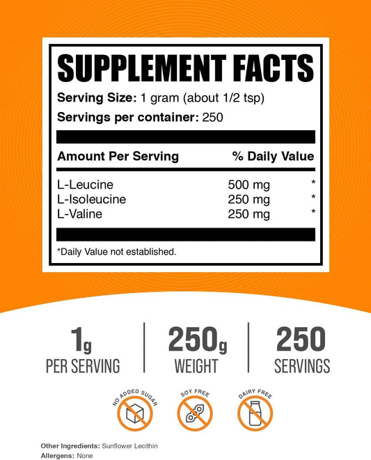 BulkSupplements BCAA Powder 2:1:1 - Unflavored Gluten Free Amino Acids Supplement 250g