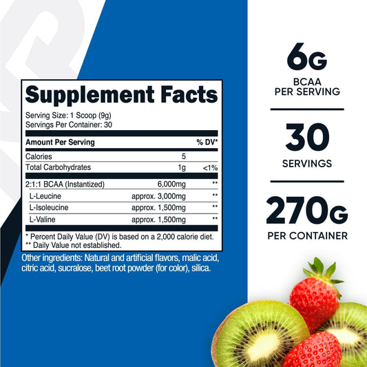 Nutricost Strawberry Kiwi BCAA Powder - 30 Servings, Optimal 2:1:1 Ratio