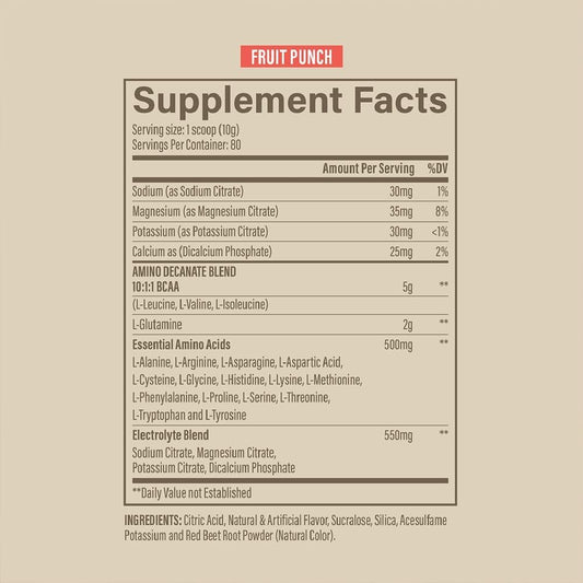 Fruit Punch BCAA Powder with Collagen Peptides for Muscle Recovery - Pre/Post Workout Drink with Electrolytes - 30 Servings