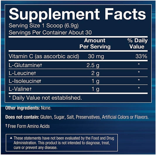BodyTech Unflavored BCAA + Glutamine Powder for Muscle Recovery, Endurance, Hydration, and Lean Muscle Growth - 7.3 oz / 30 Servings