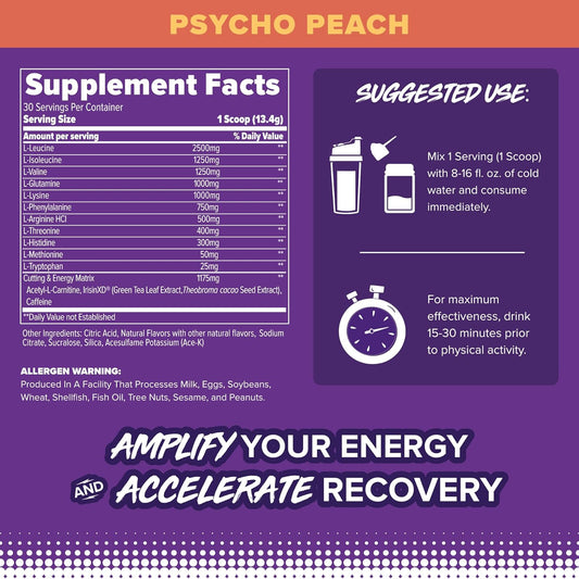 FINAFLEX EAA Hardcore, Psycho Peach - 14.2 oz - Performance Boost with BCAAs, L-Glutamine, L-Arginine - 30 Servings