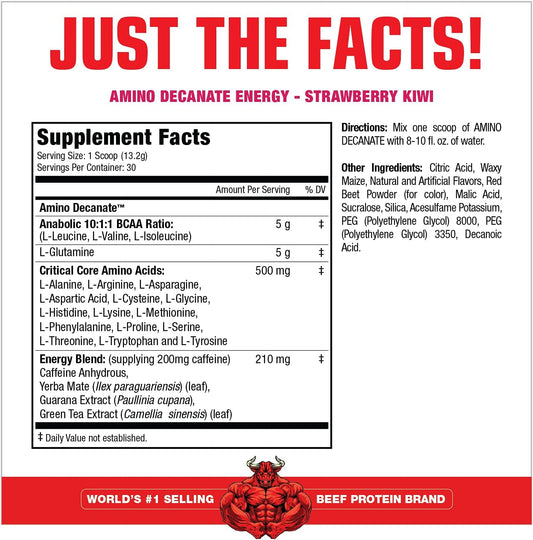 MuscleMeds Amino DECANATE Strawberry Kiwi Workout Drink - High Leucine, Glutamine, BCAAs - 30 Servings