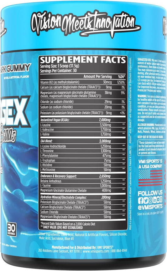 VMI Sports Aminogex Ultra: EAA + BCAA Powder for Recovery and Hydration (Blue Shark Gummy Flavor) - 30 Servings
