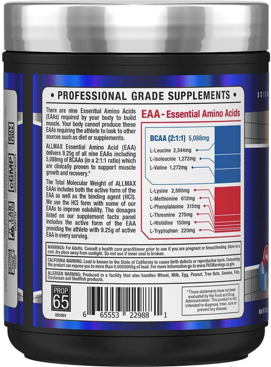 ALLMAX Nutrition Essentials EAA Powder - Unflavored, 320g - Build Muscle, Recovery Support - 5g BCAAs, Vegan, Gluten Free - 30 Servings