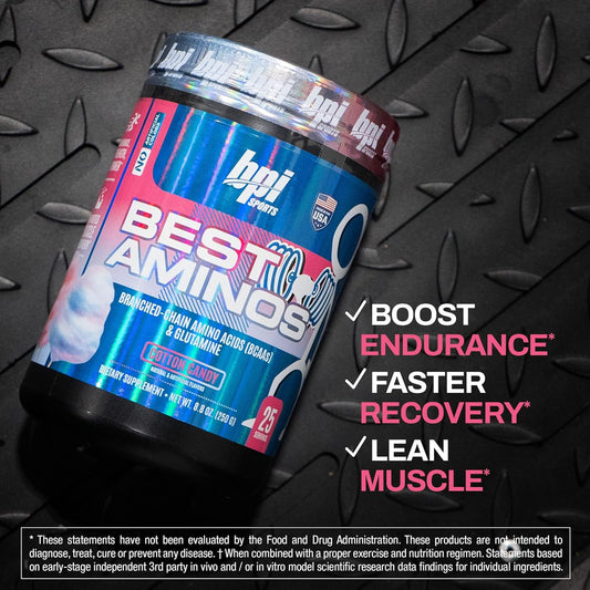 BPI Sports Best Aminos Cotton Candy Flavor - BCAA Powder Post Workout & Glutamine Recovery Drink - 25 Servings for Hydration & Recovery