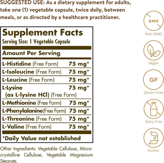 Solgar Essential Amino Complex: 90 Vegetable Capsules, Non-GMO, Vegan, Gluten Free, Dairy Free, Kosher - 90 Servings
