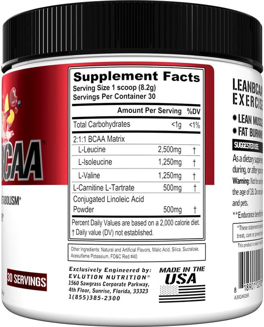 Stimulant-Free Lean BCAA Powder with CLA and Amino Acids for Muscle Recovery and Fat Burn - Fruit Punch Flavor