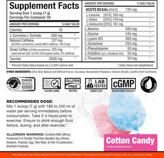 ALLMAX Nutrition AMINOCUTS (ACUTS) Energy Drink - Taurine, L-Carnitine, Green Coffee, Cotton Candy - 30 Servings
