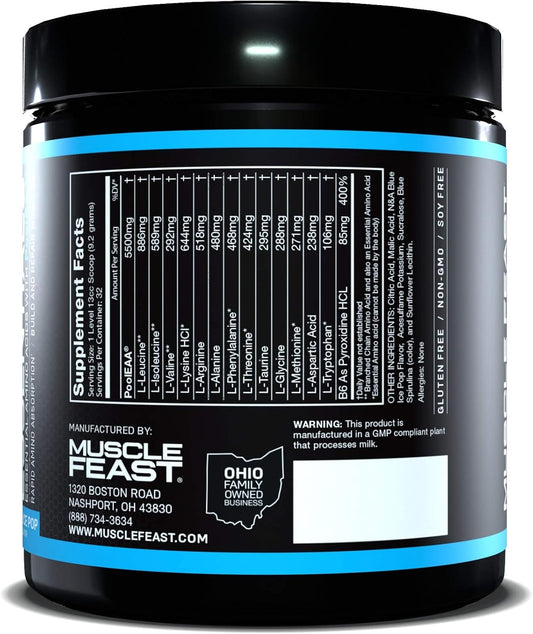 Vegan Essential Amino Acid Powder for Post Workout Recovery - Blue Ice Pop Flavor, 300g