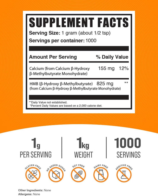 BulkSupplements.com Calcium HMB Powder - Beta-Hydroxy Beta-Methylbutyrate Supplements - 1000mg per Serving, Gluten Free - 5kg (11 lbs) Pack of 5