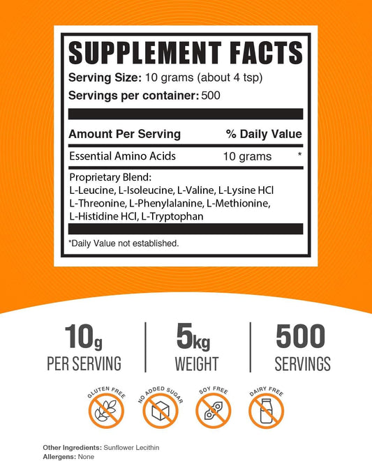 BulkSupplements.com Essential Amino Acids Powder - Unflavored & Gluten Free EAA Supplement - 10g EAAs per Serving - 5kg (11 lbs) Pack of 5