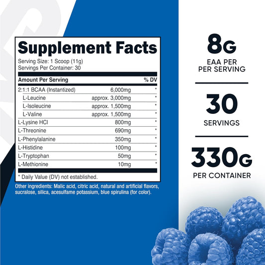 Nutricost Blue Raspberry EAA Powder - 30 Servings, Essential Amino Acids, Non-GMO, Gluten Free, Vegetarian
